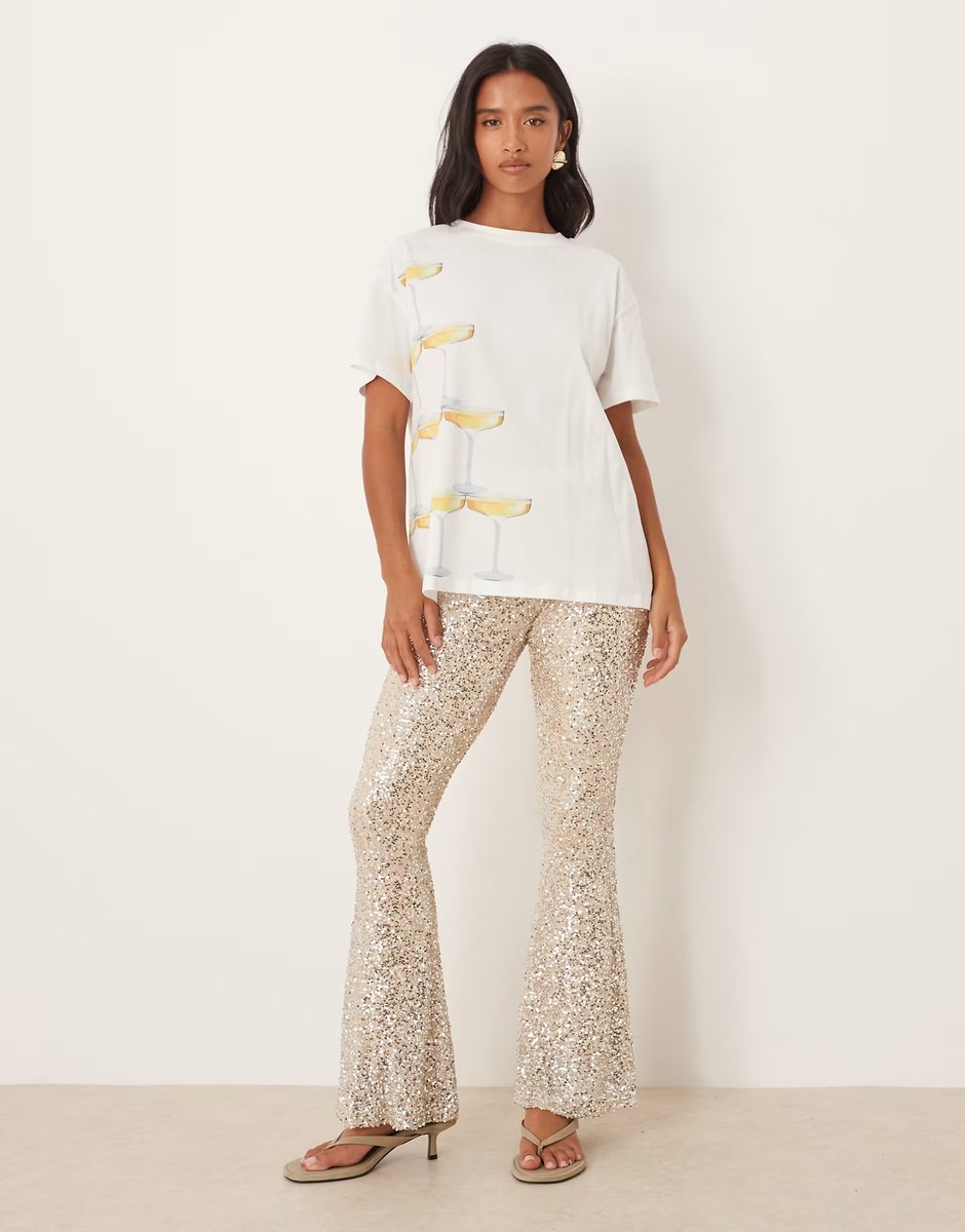 The ASOS Petite Sequin Flared Trouser Co-ord in Silver is ideal for evening, party.