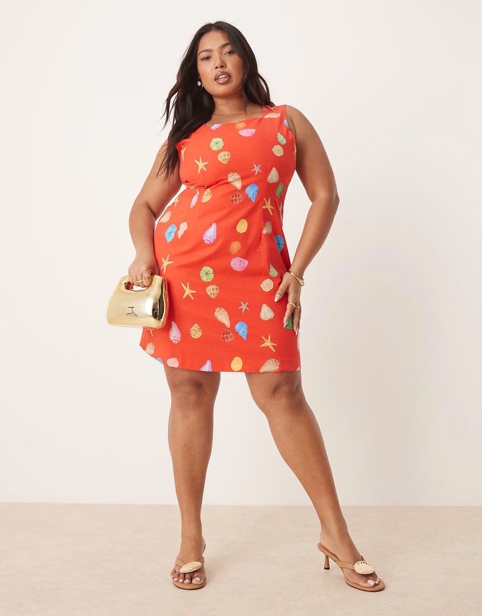 The ASOS Rainbow Shell Print Mini Shift Dress in Red is ideal for casual, beach, evening.