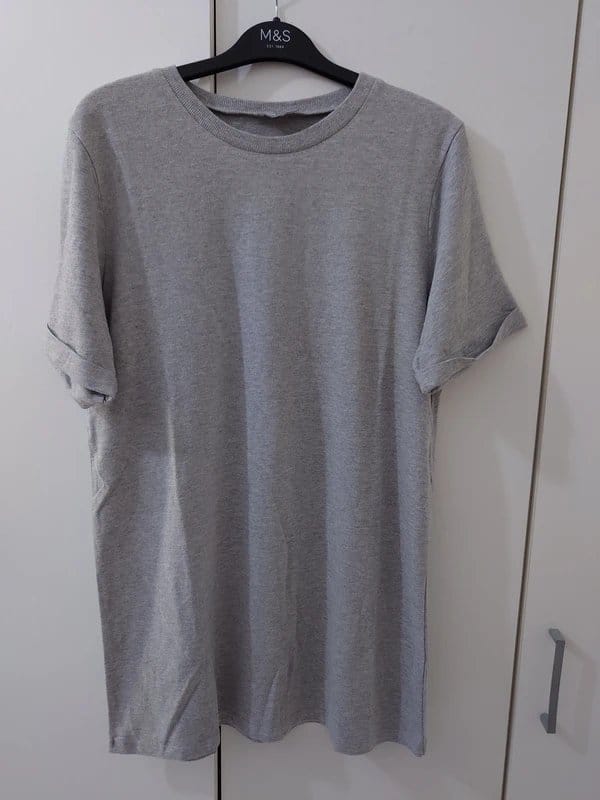 The ASOS Grey Cotton-Rich Long T-Shirt Dress is available in sizes M.