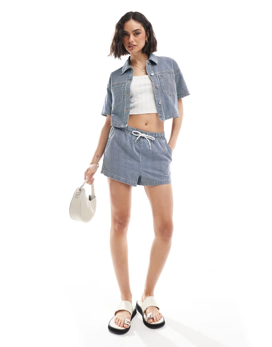 The ASOS New Look Striped Denim Short & Shirt Co-ord in Blue is ideal for casual.