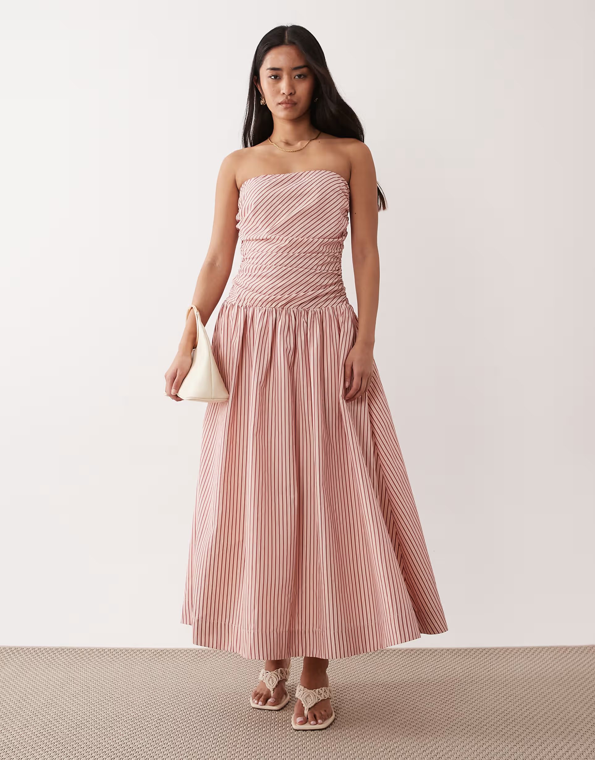 The ASOS Striped Bandeau Midi Dress in Red is ideal for casual, evening.
