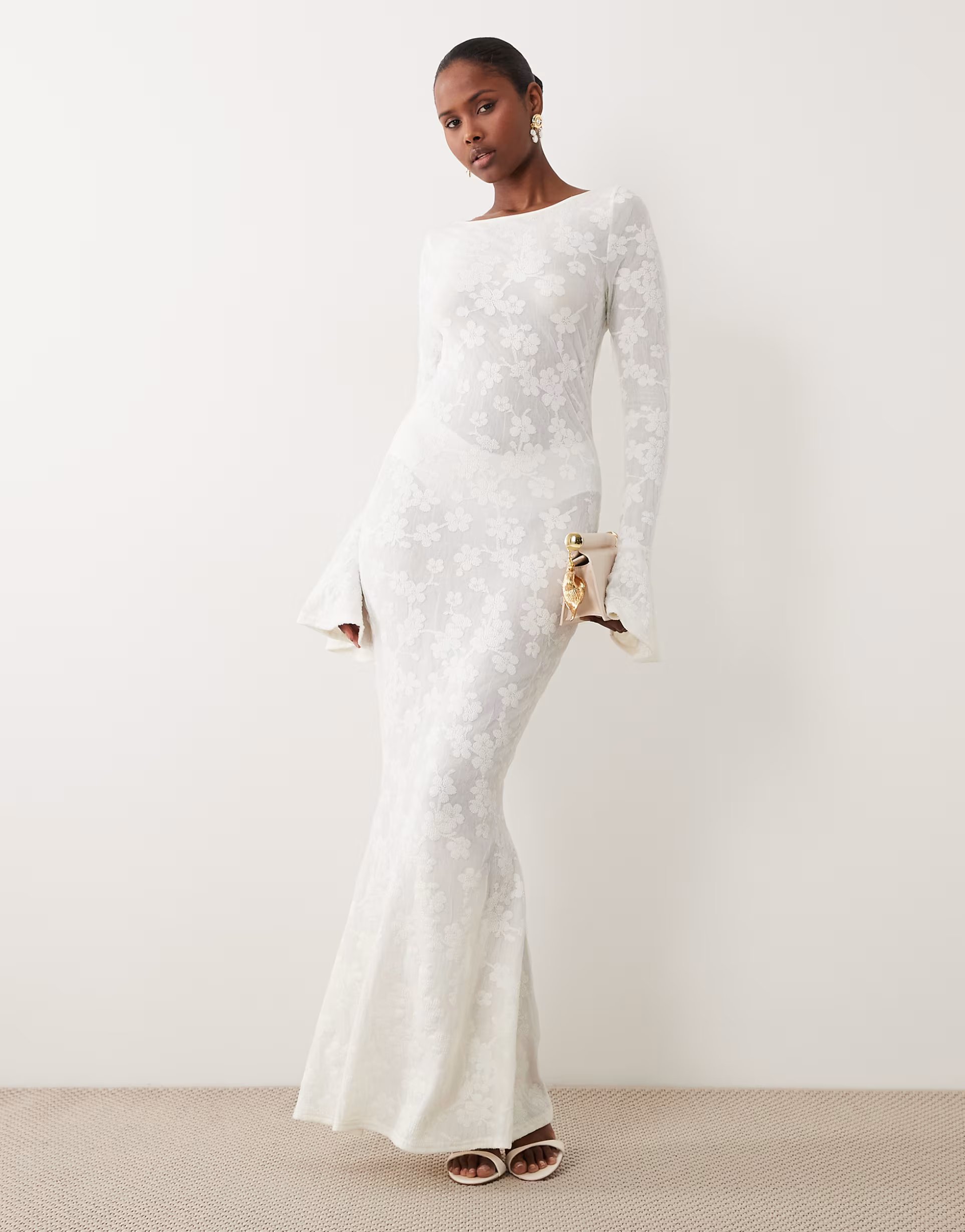The ASOS Noughts & Kisses Floral Bell Sleeve Maxi Dress in White is ideal for evening, party.
