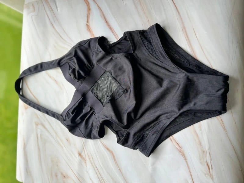 The ASOS Black Mesh Cut-Out Halter Swimsuit - UK 10 is made from mesh, polyester.