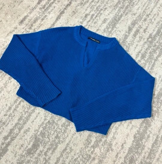 The ASOS Cobalt Blue Sweater with Notch Neck is available in sizes S.