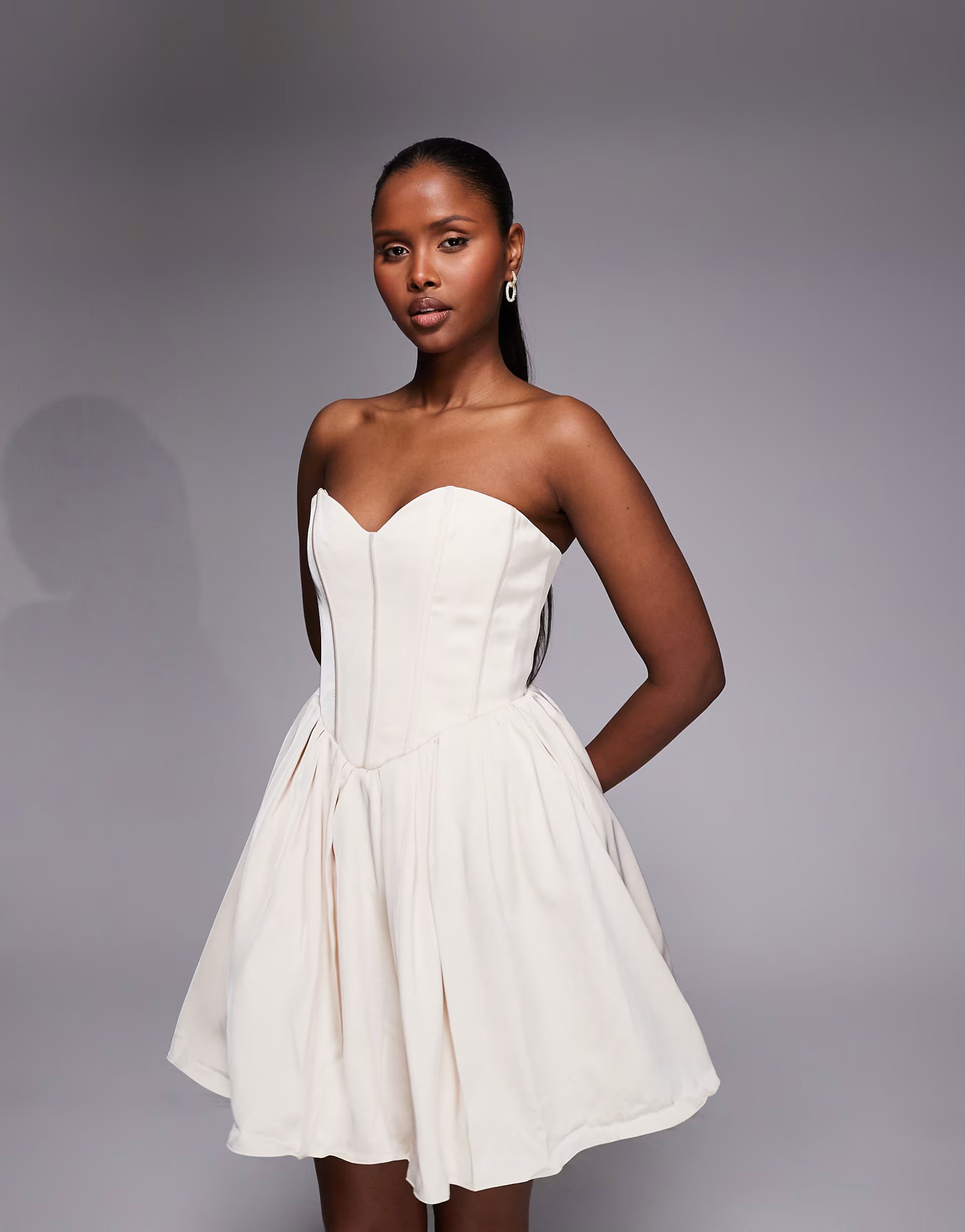 The ASOS Oh Polly Sweet Sweetheart Corset Mini Dress in Ivory is available in sizes XXXL, XXL, XL, XS, L, M, S.