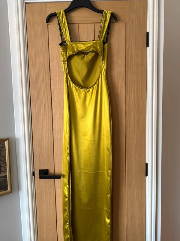 The ASOS Olive Sweetheart Satin Maxi Dress is available in sizes S.