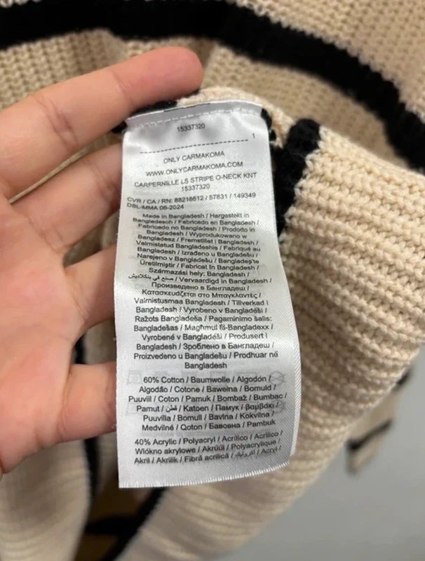 The ASOS Curve Round Neck Stripe Jumper in Stone is made from cotton, acrylic.