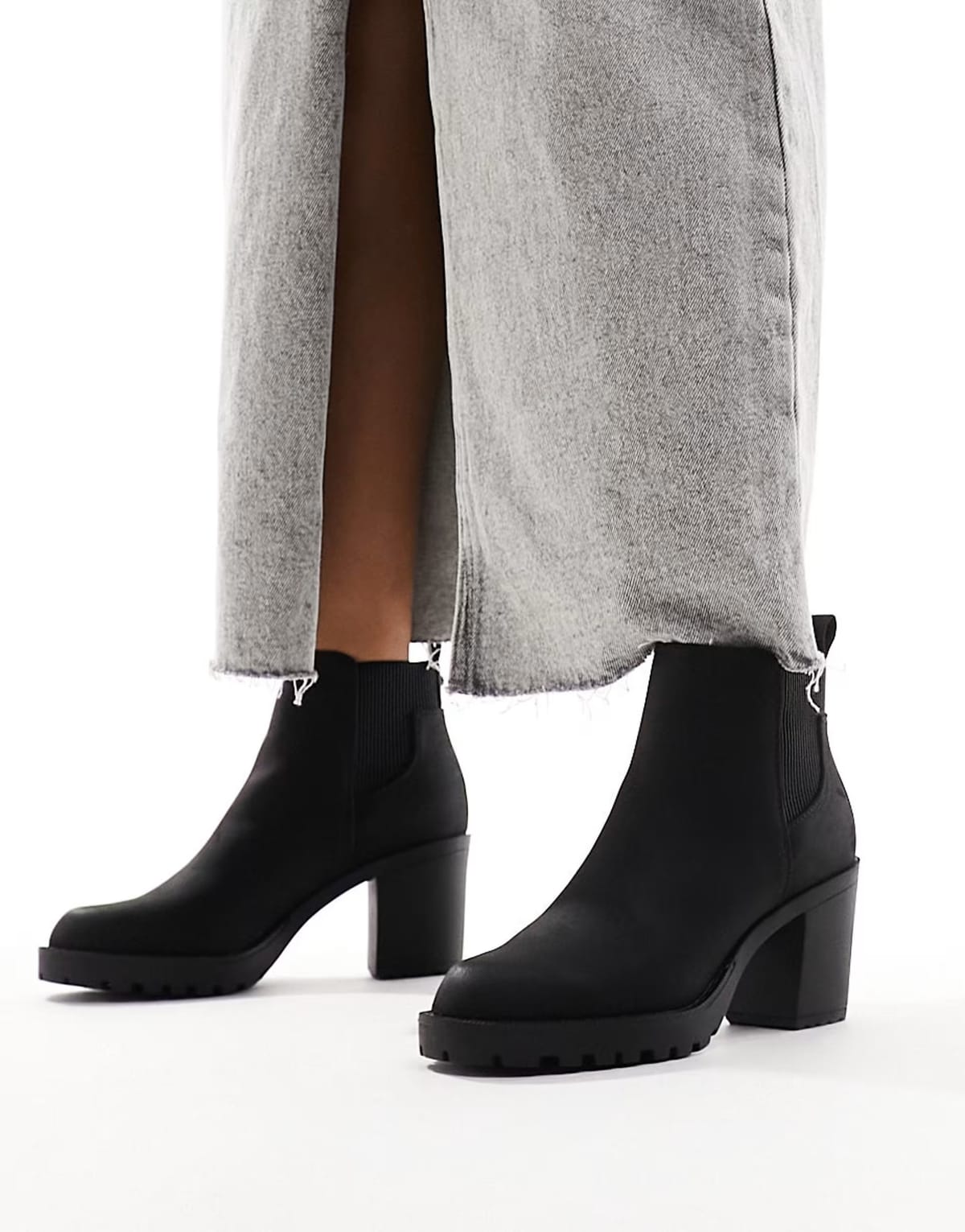 The ASOS Black Faux Leather Heeled Boot is made from faux leather.