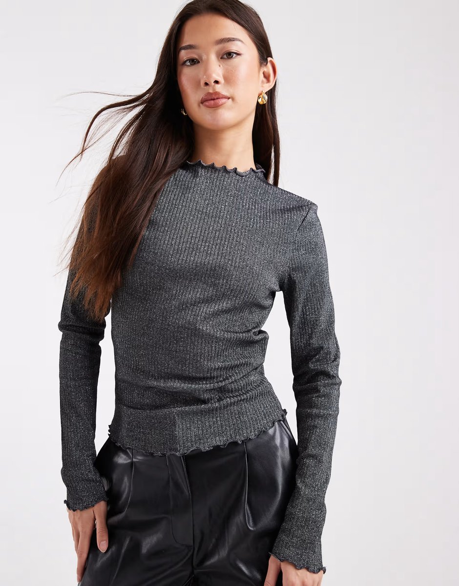 The ASOS Lettuce Edge High Neck Ribbed Top in Black Glitter is ideal for evening, party.