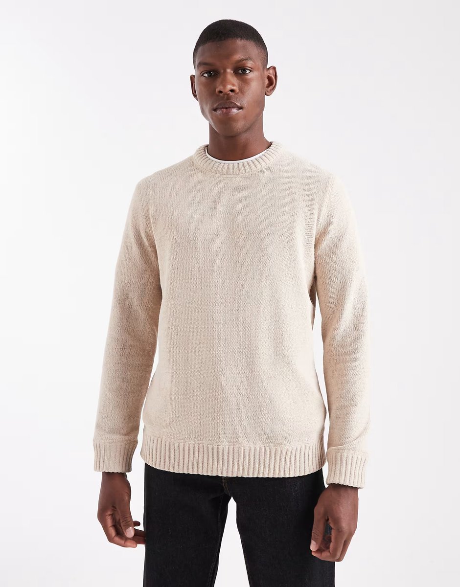 The ASOS ONLY & SONS Chenille Crew Neck Jumper in Beige is ideal for casual, work.