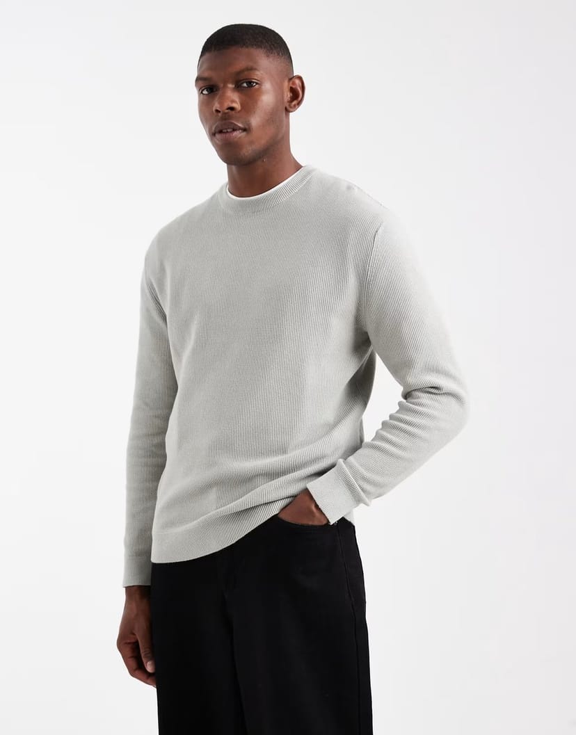 The ASOS Only & Sons Waffle Knit Jumper in Light Grey is ideal for casual.