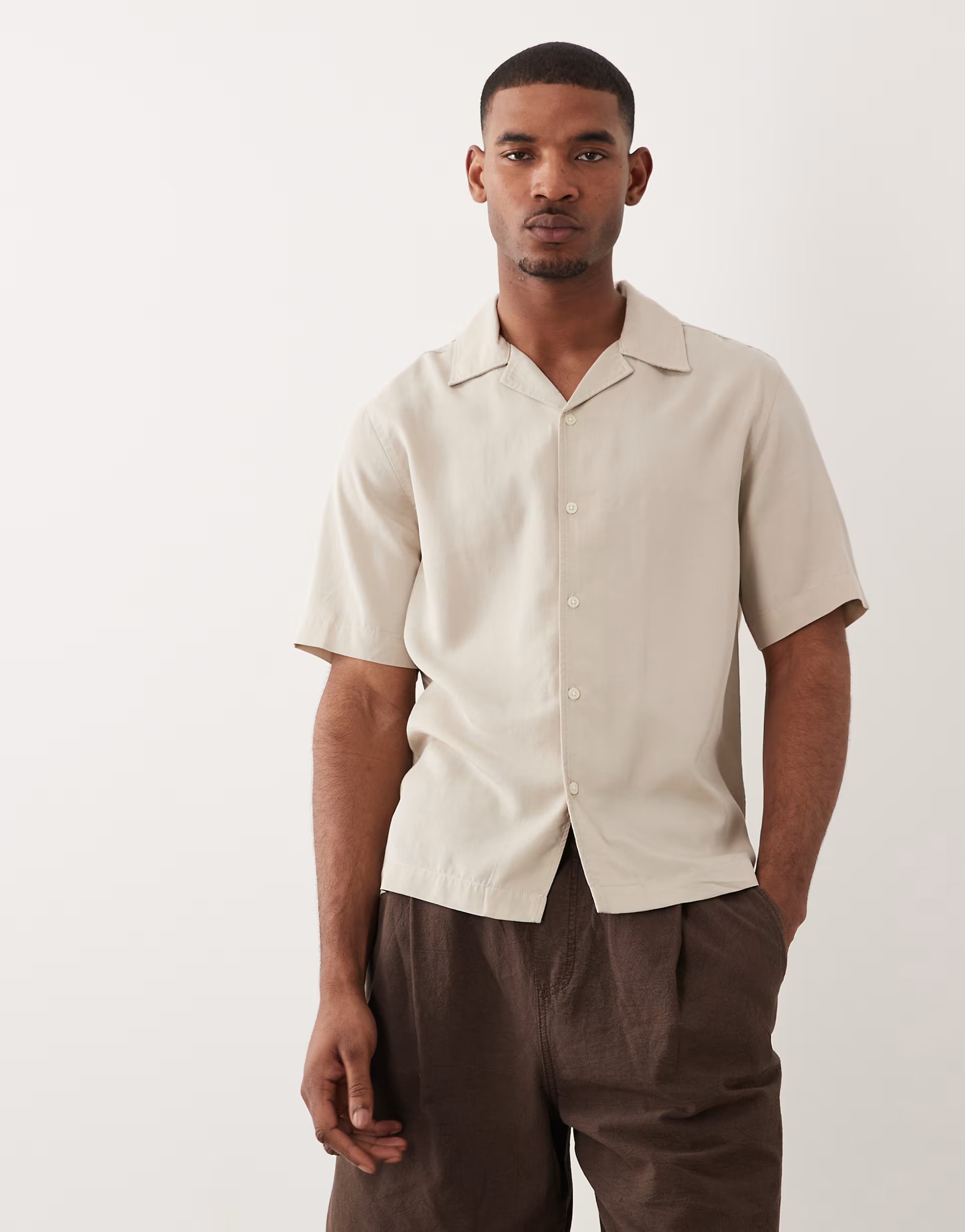 The ASOS Soft Touch Revere Collar Relaxed Shirt in Cream is ideal for casual, business-casual.
