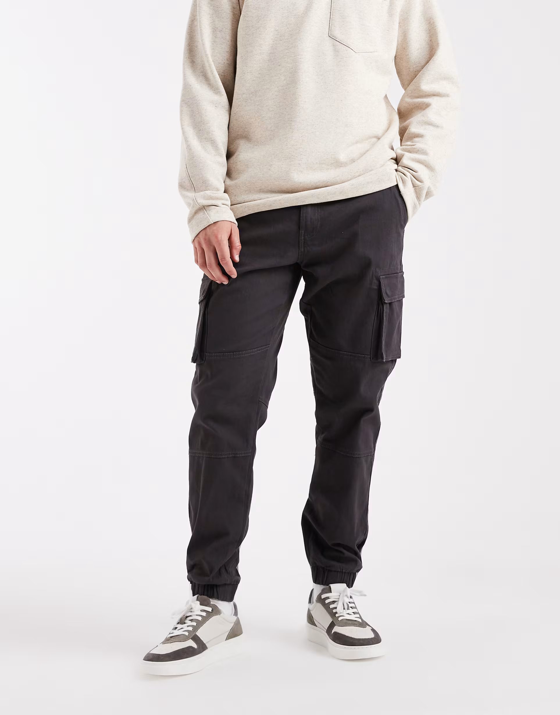 The ASOS Tapered Fit Cargo Trousers in Grey is made from cotton, polyester.