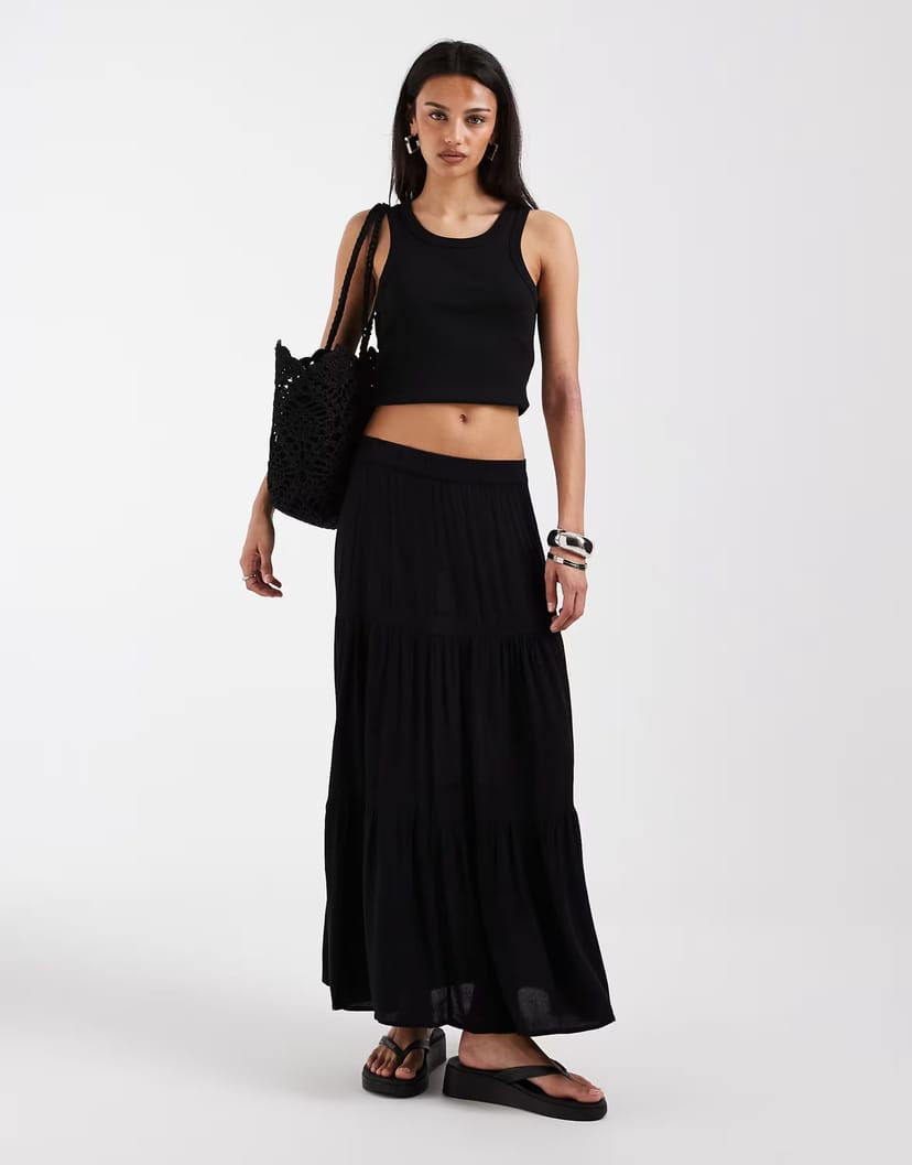 The ASOS Black Tiered Maxi Skirt is ideal for casual, evening, party.