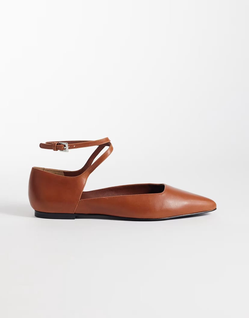 The ASOS Brown Leather Strap Ballerina Flats is ideal for everyday, casual, work.