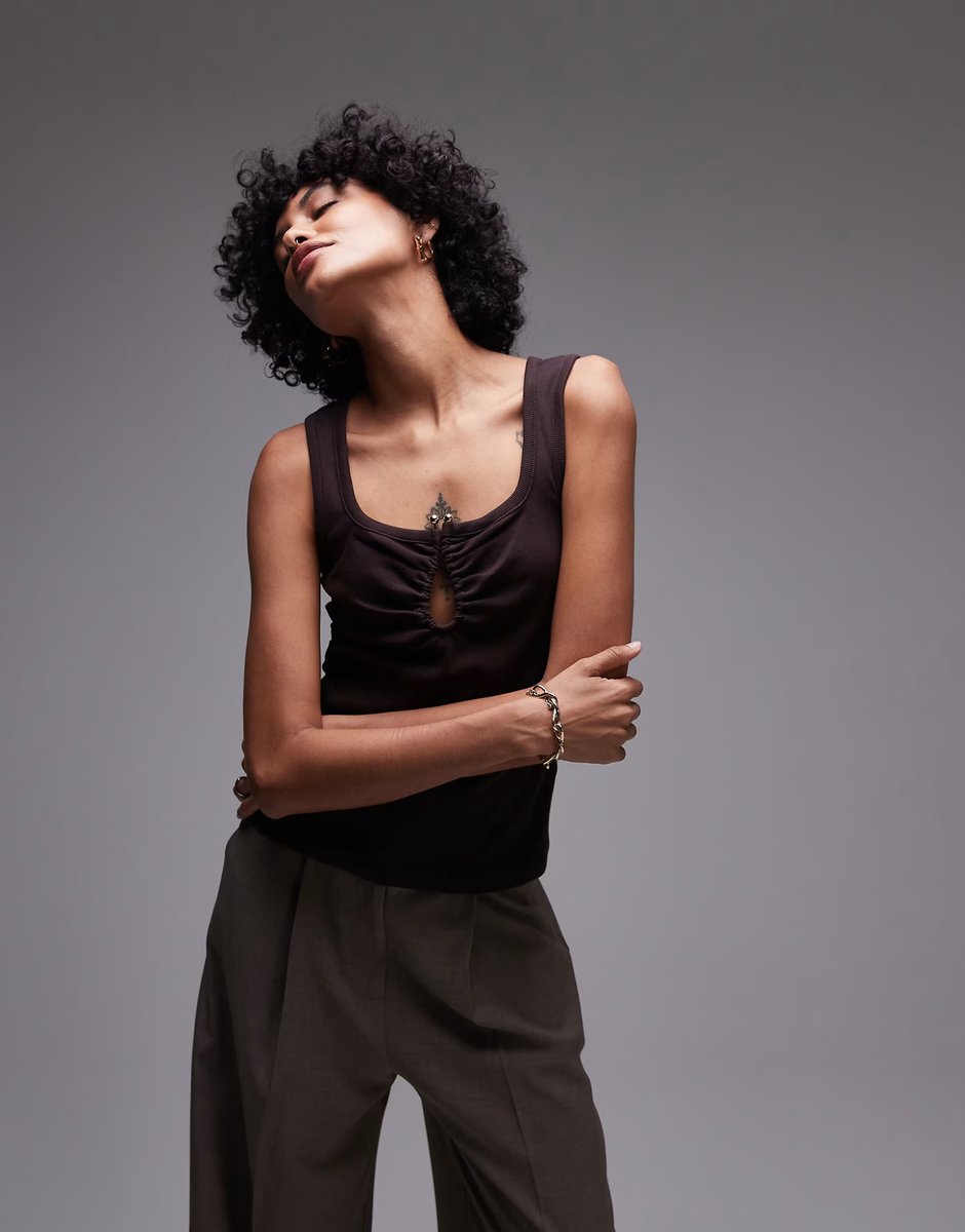 The ASOS Ribbed Jersey Sleeveless Top in Brown is ideal for casual, party.