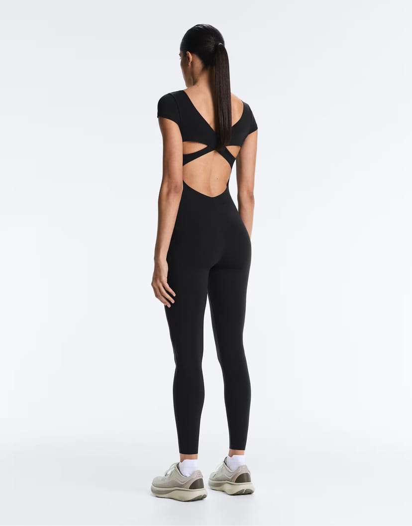 The ASOS Compressive Short-Sleeve Jumpsuit in Black is ideal for gym.