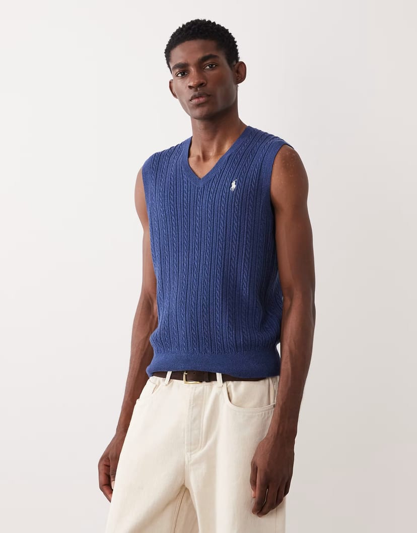 The Polo Ralph Lauren Logo Cotton Vest in Navy is ideal for casual, smart-casual.