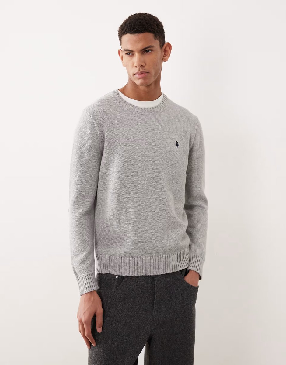 The Polo Ralph Lauren Grey Marl Heavyweight Cotton Knit Jumper is ideal for casual, smart-casual, weekend.