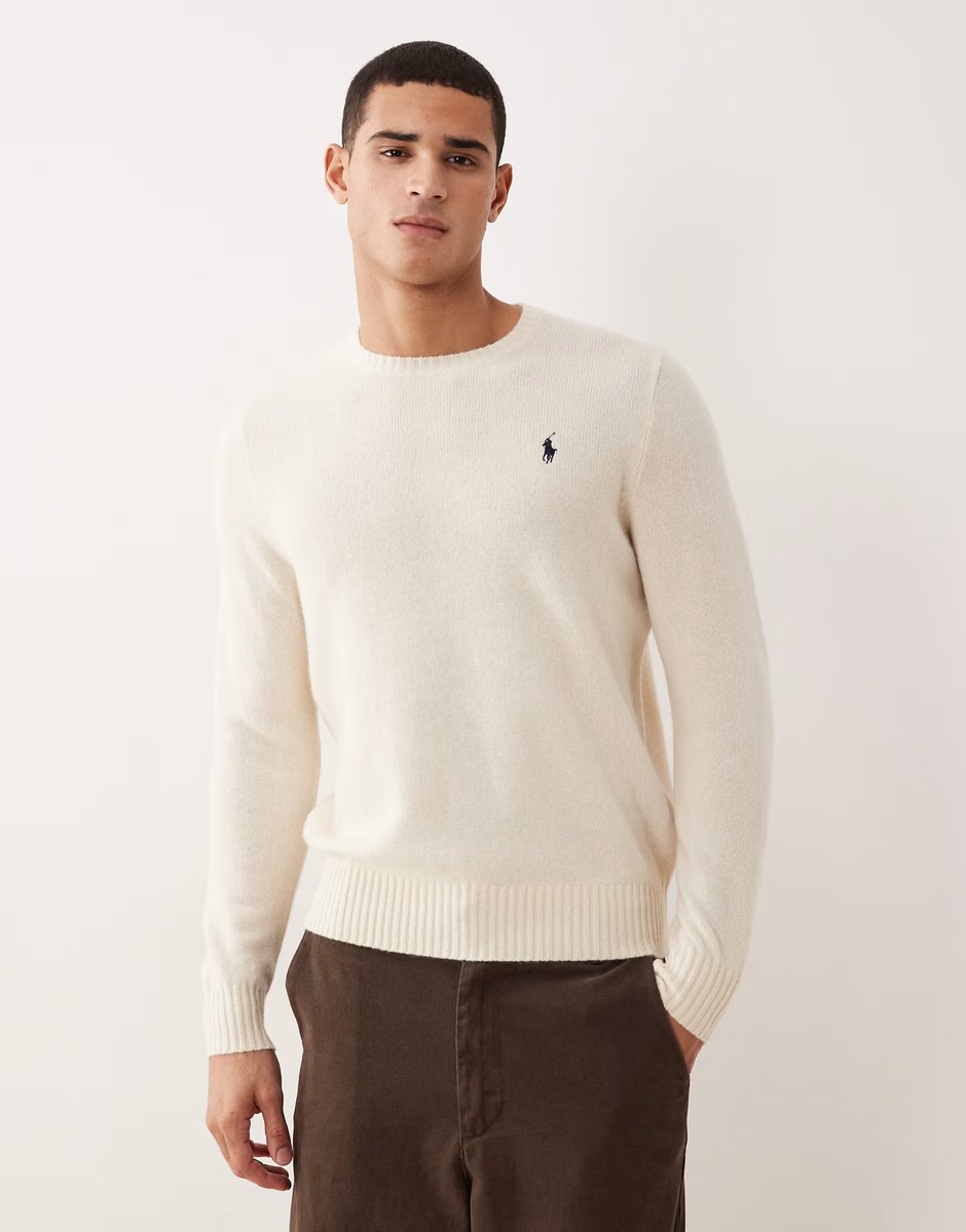 The Polo Ralph Lauren Cream Wool Knit Jumper is available in sizes XXXL, XXL, XL, XS, L, M, S.