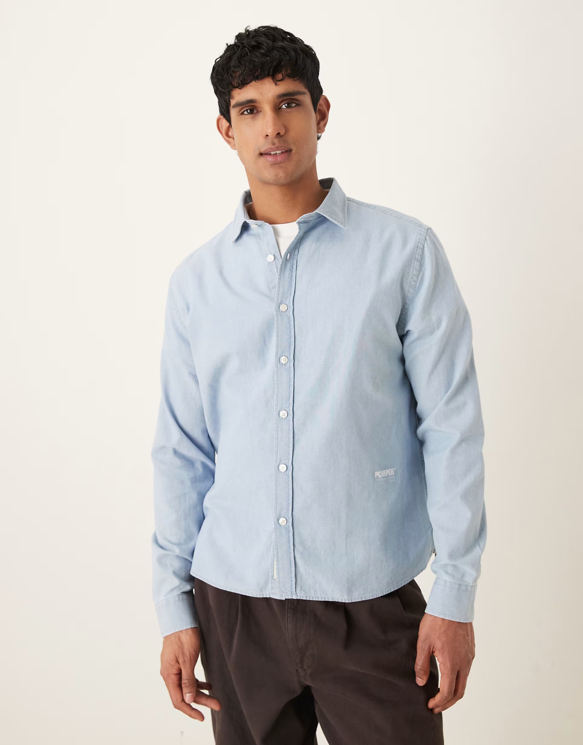 The ASOS Pompeii Blue Long Sleeve Oxford Shirt is made from cotton.
