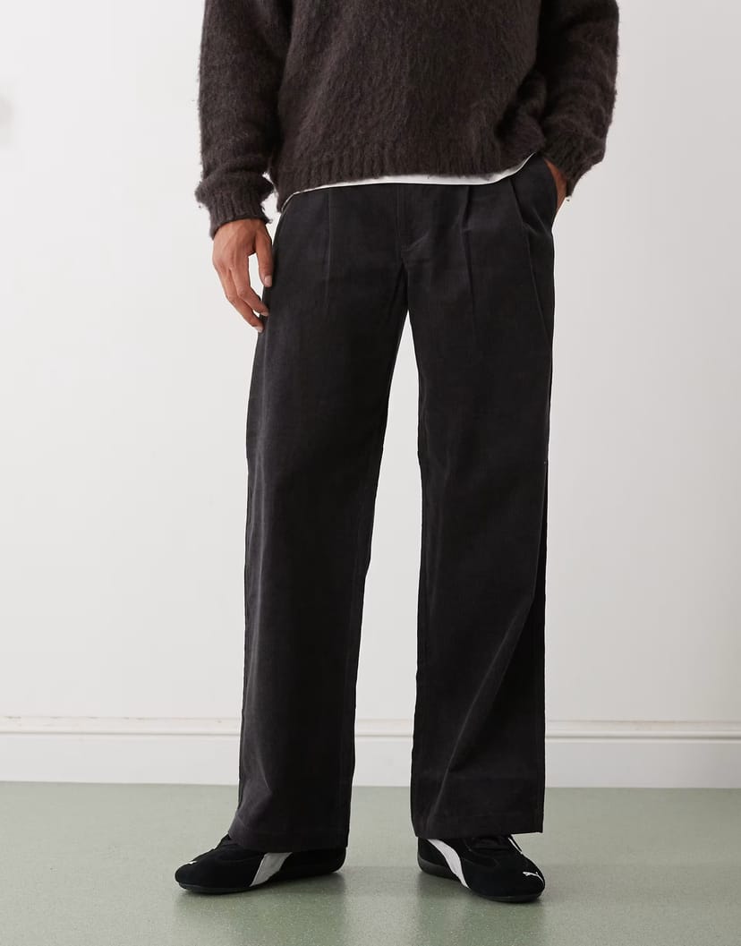 The ASOS Straight Leg Baggy Trousers in Dark Grey is ideal for casual, smart-casual.