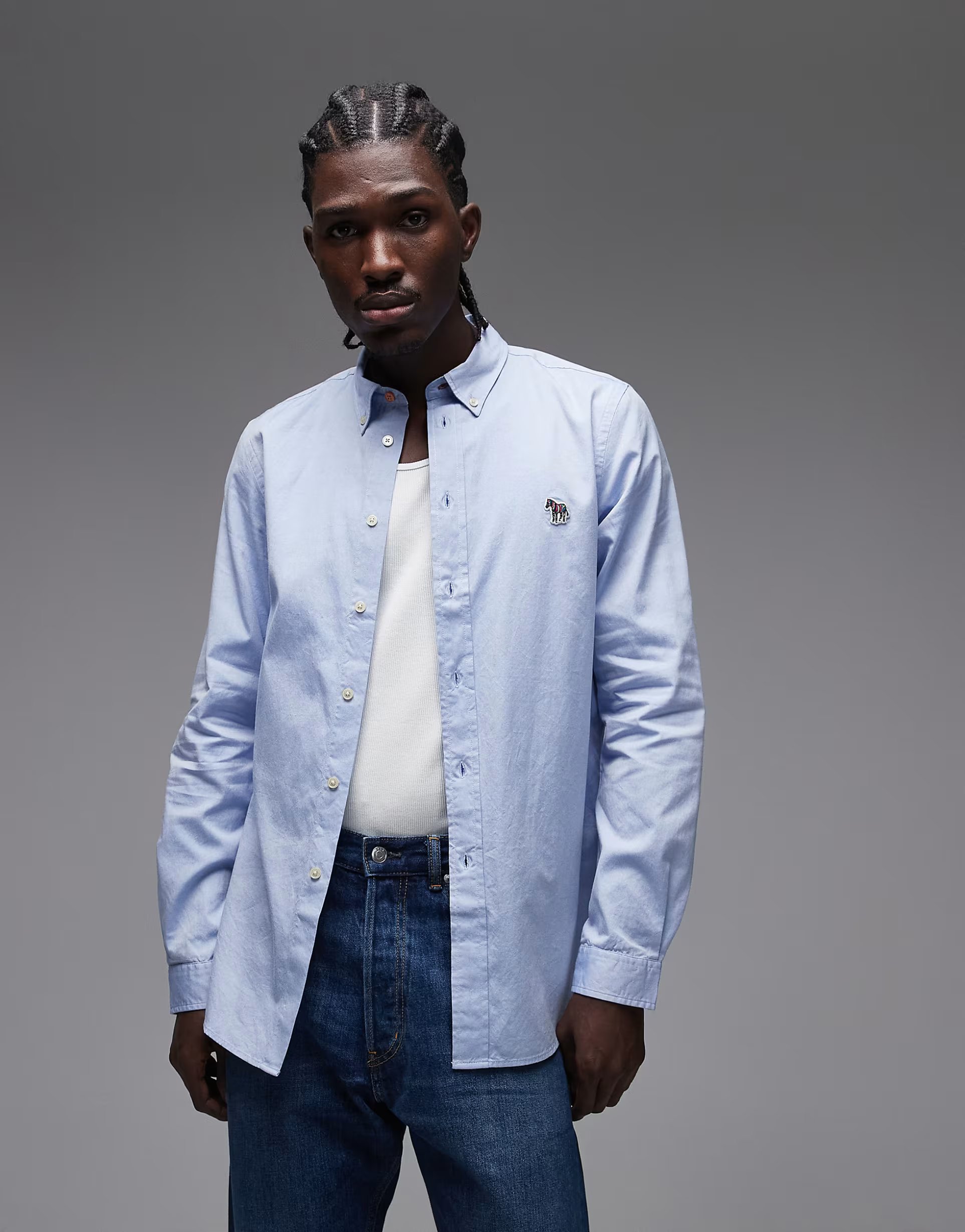 The ASOS PS Paul Smith Long Sleeve Tailored Fit Linen Shirt in Blue is available in sizes XXXL, XXL, XL, XS, L, M, S.