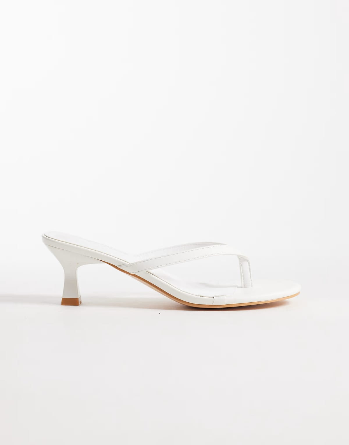 View ASOS's returns policyChic white kitten heel thong sandals from ASOS. Featuring a sleek thong strap and a pointed toe, these sandals are perfect for evening events or a night out.