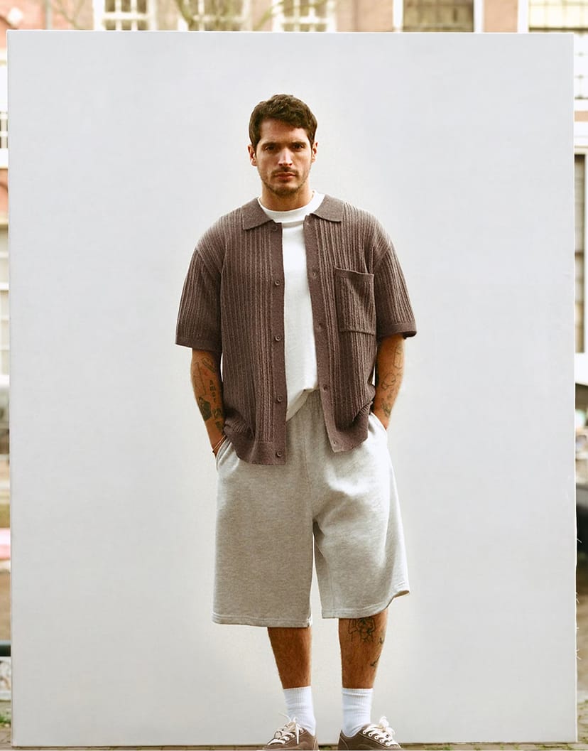 The ASOS Brown Knit Short Sleeve Shirt is made from cotton, polyester.