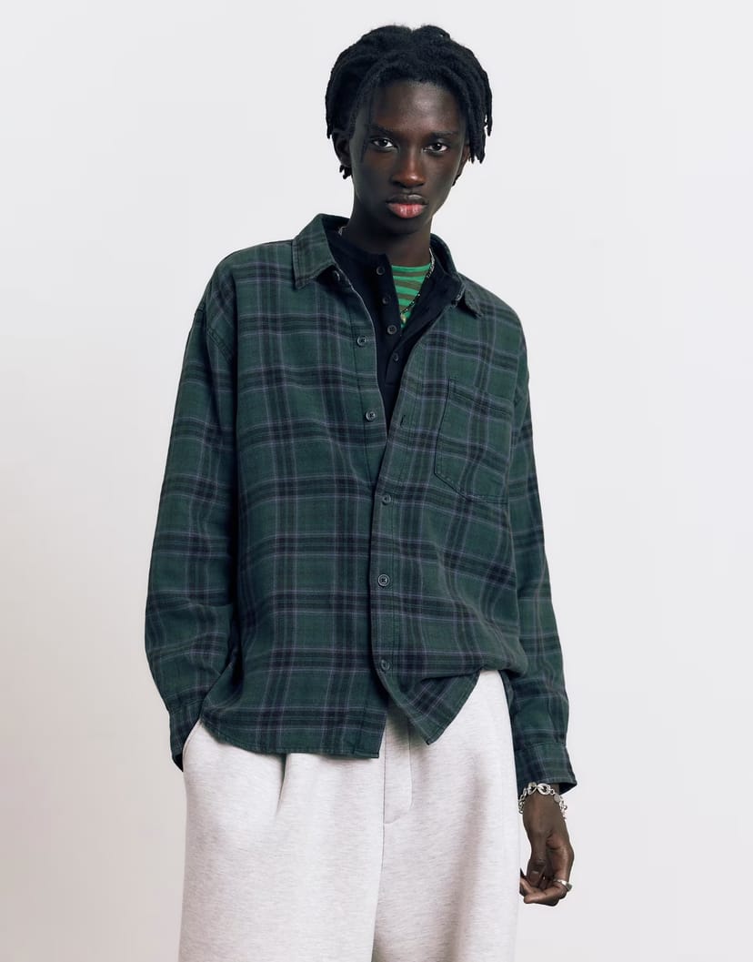 The ASOS Pull&Bear Long Sleeve Check Shirt in Dark Blue is made from cotton, polyester.