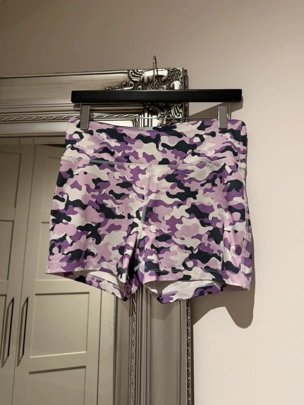 The ASOS Purple Camouflage Print Gym Shorts is available in sizes M.