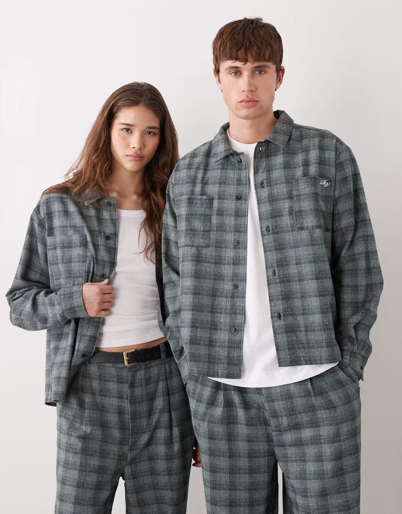The ASOS Reclaimed Vintage Check Shirt Co-ord in Grey and Blue is made from check fabric.