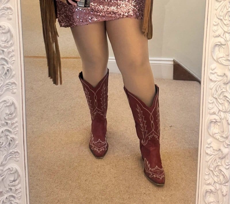 Pair with a denim skirt and a western-style jacket for a complete country look.