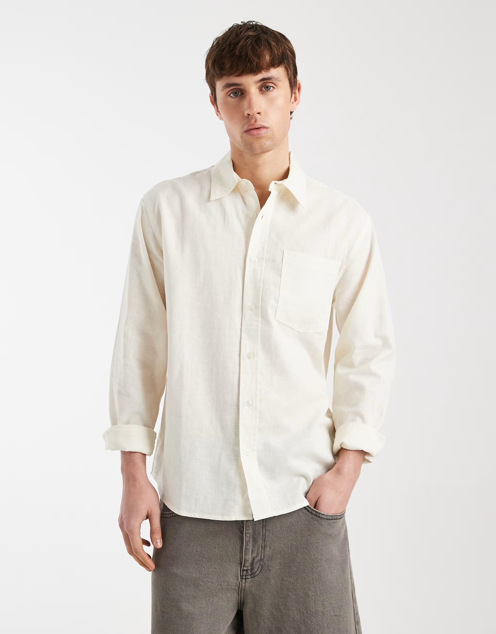 The ASOS Redefined Rebel Boxy Long Sleeve Linen Shirt in White is made from linen, cotton.