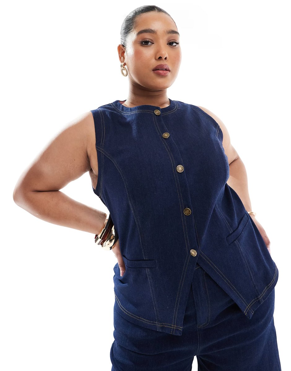 The Renee Studio Button Front Waistcoat & Jorts Co-ord in Dark Wash Denim is ideal for casual, weekend, smart-casual.