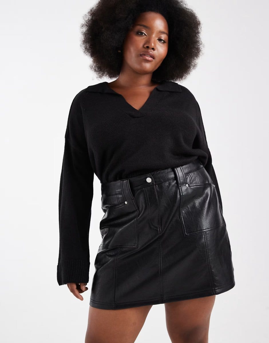 The ASOS Renee Plus Leather Look Mini Skirt in Black is ideal for casual, evening.