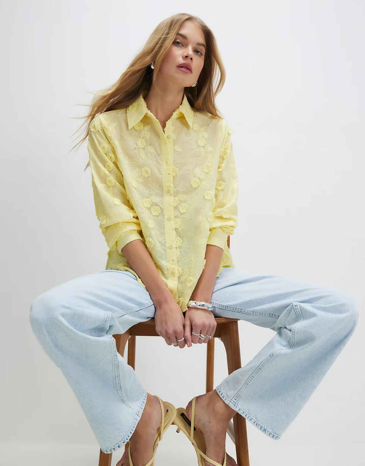 The River Island Yellow 3D Floral Embellished Shirt is ideal for casual, outings.