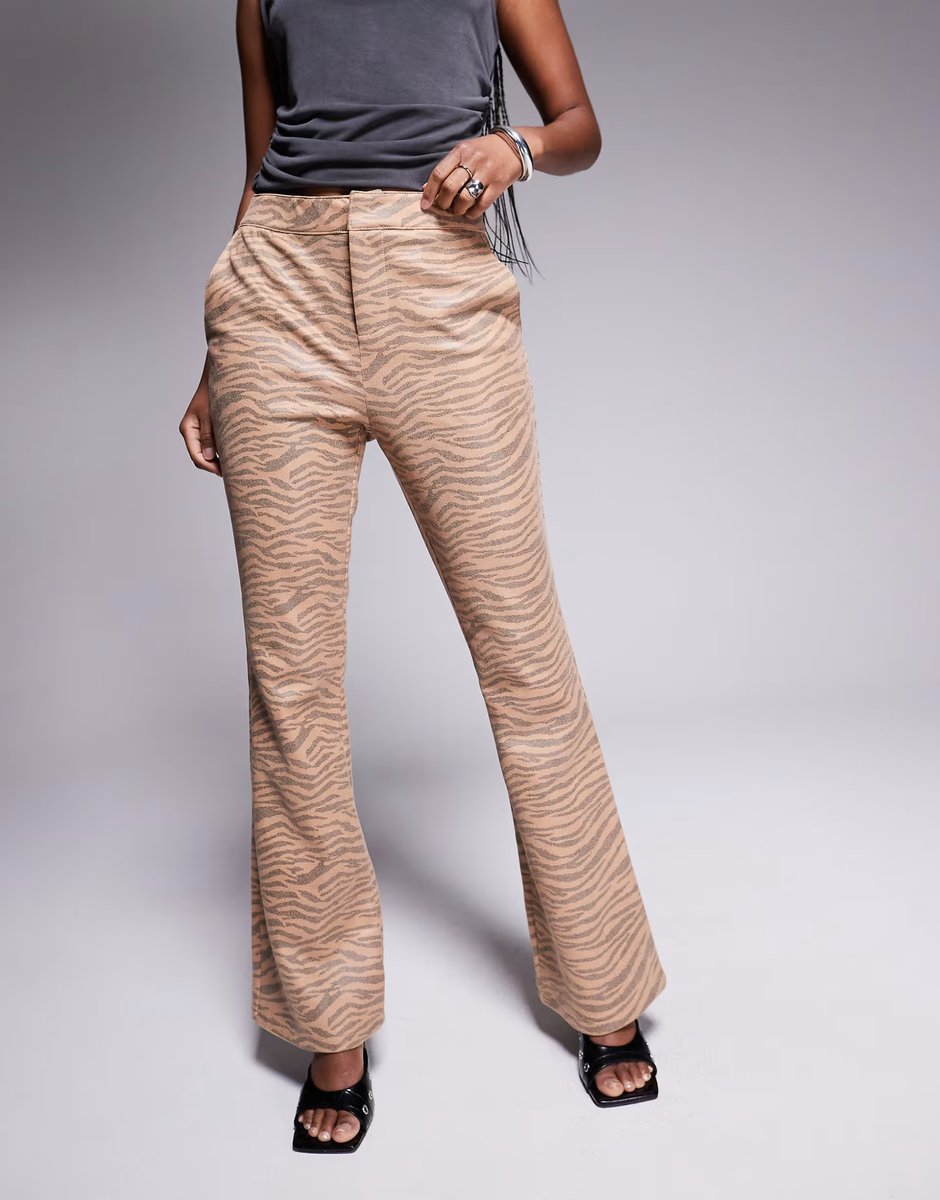 The ASOS River Island Faux Leather Bootleg Trousers in Tiger Print is ideal for casual.