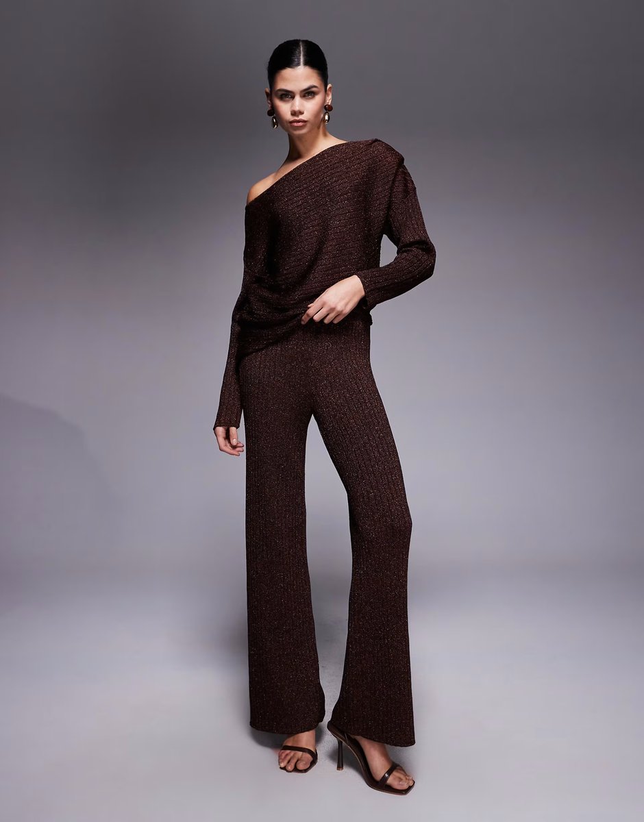 The River Island Brown Glitter Wide Leg Trouser Co-ord is ideal for evening, party.