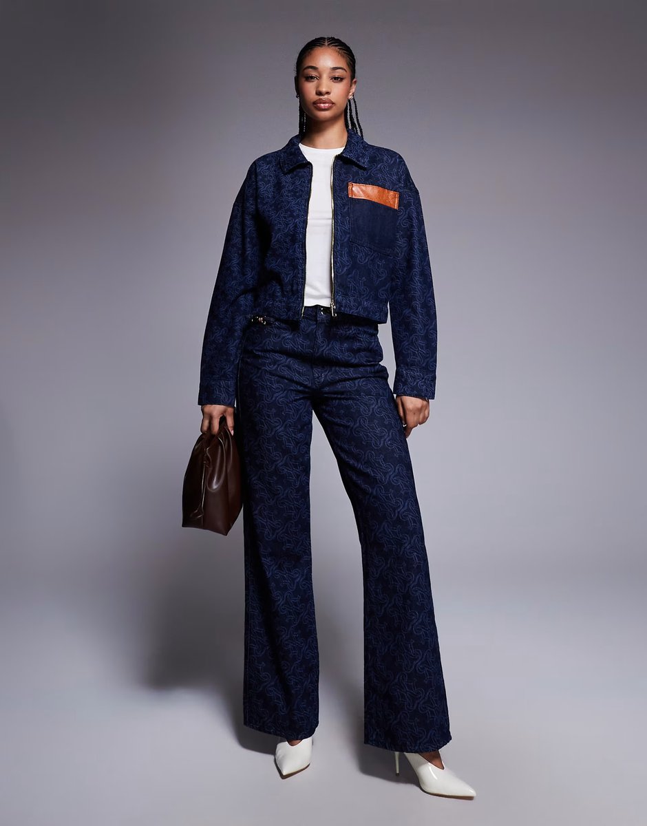The River Island Mongrammed Denim Jacket and Jean Co-ord is ideal for casual, evening, weekend.