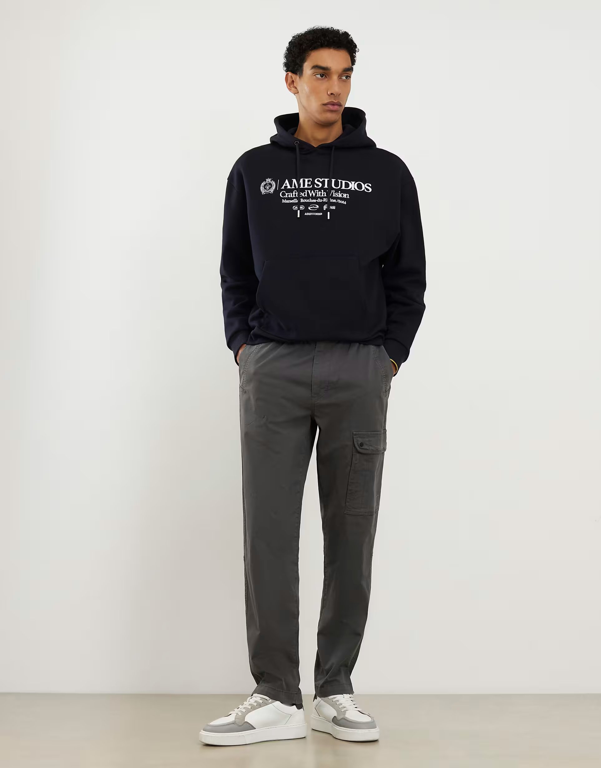 Designed in dark grey, these regular fit cargo trousers feature multiple pockets and a straight-leg silhouette. Perfect for a casual yet stylish look.