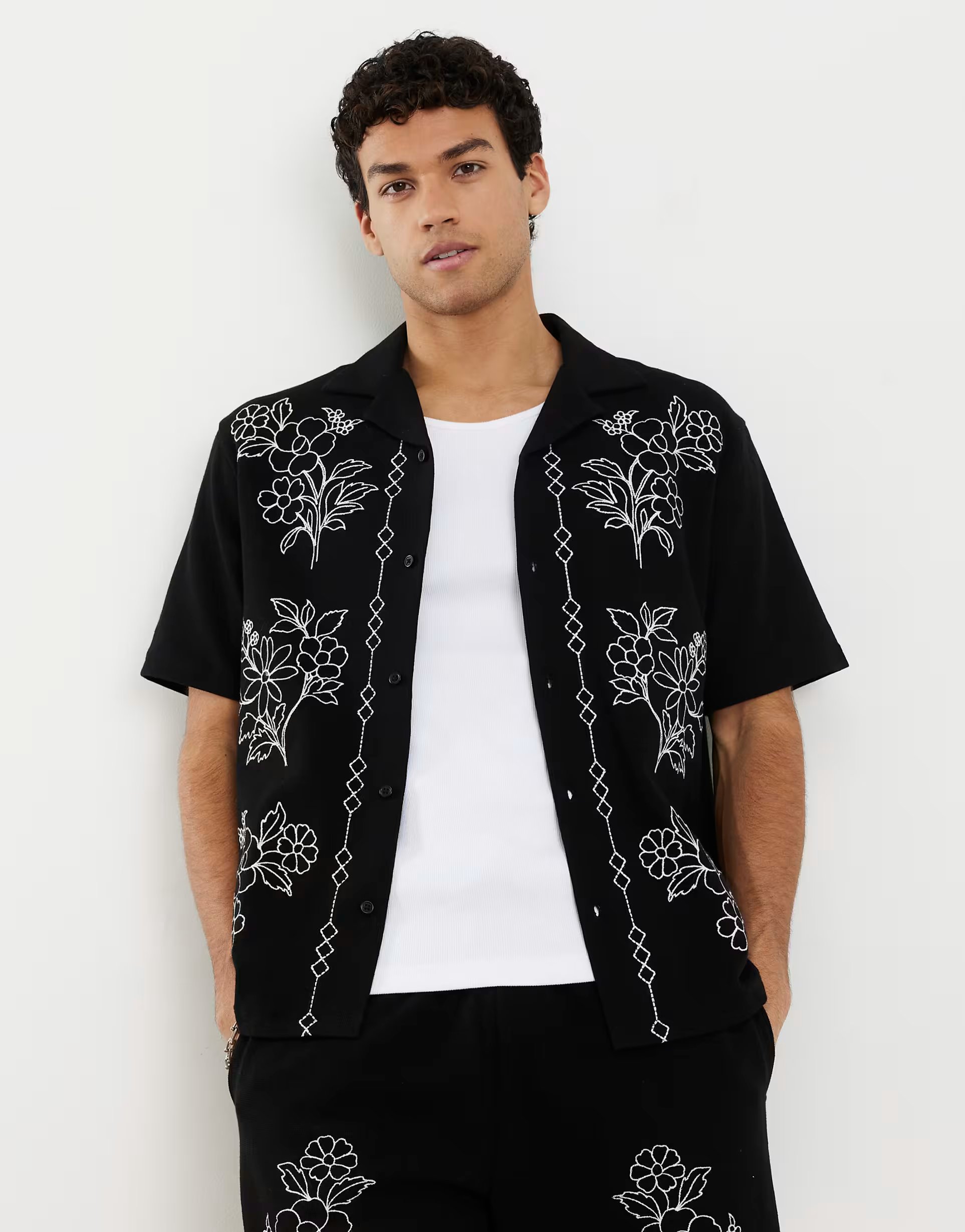 The ASOS Floral Embroidered Shirt in Black is ideal for casual.
