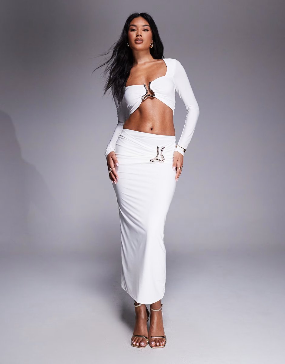 The ASOS River Island Ruche Midi Skirt Co-ord in White is ideal for casual, weekend.