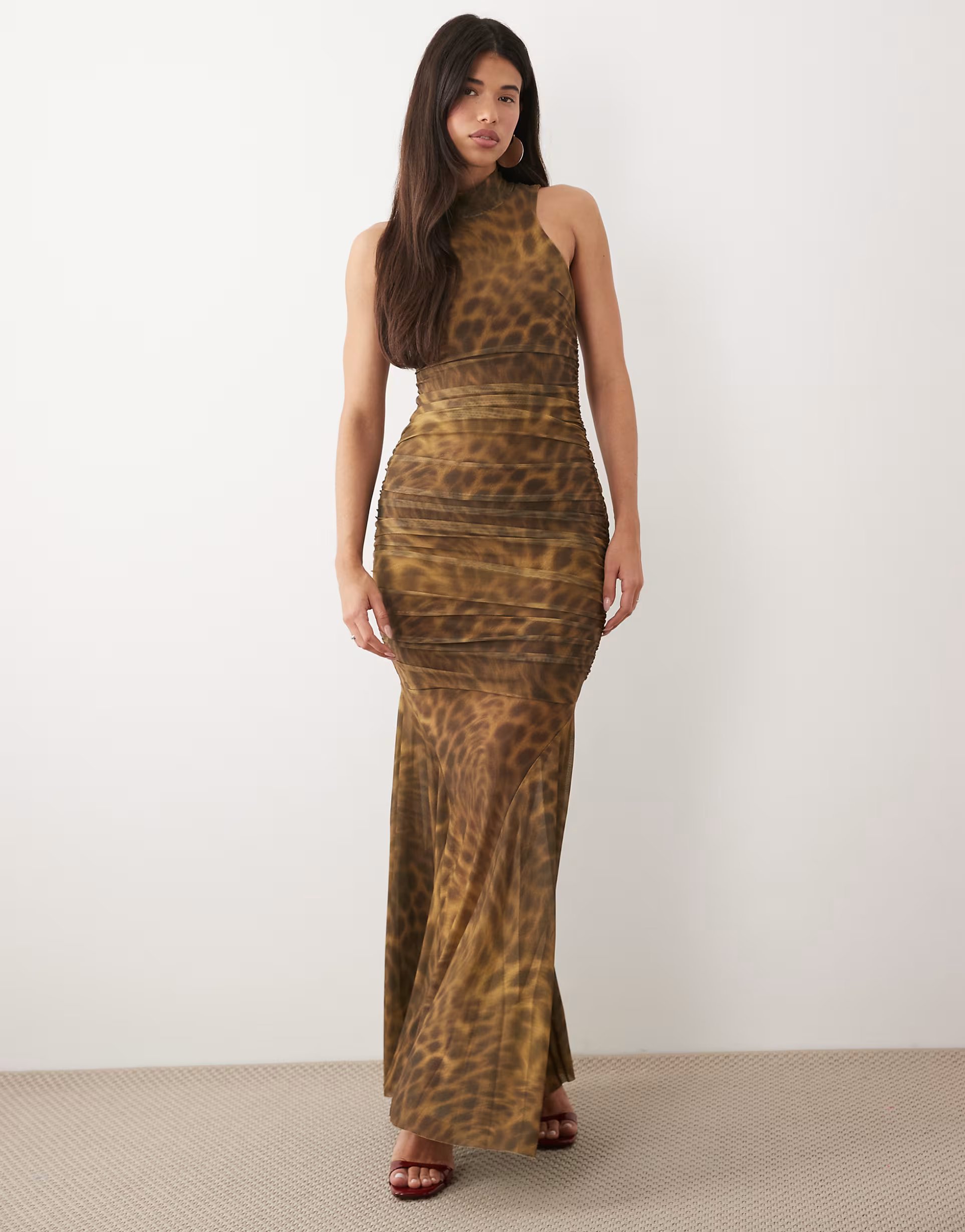 The ASOS Sculpting Mesh High Neck Sleeveless Dress in Leopard is ideal for evening, party.