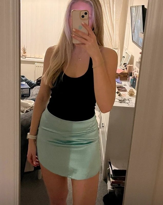 This Green Satin Mini Skirt from ASOS is a sleek and stylish addition to any wardrobe. Crafted from satin, it boasts a shiny finish and a slim fit that flatters the figure. The high waist and mini length make it perfect for pairing with a variety of tops, whether for a casual day out or a night on the town.