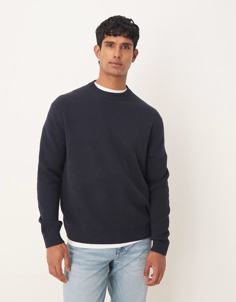 The ASOS Boxy Cotton Jumper in Navy is ideal for casual.