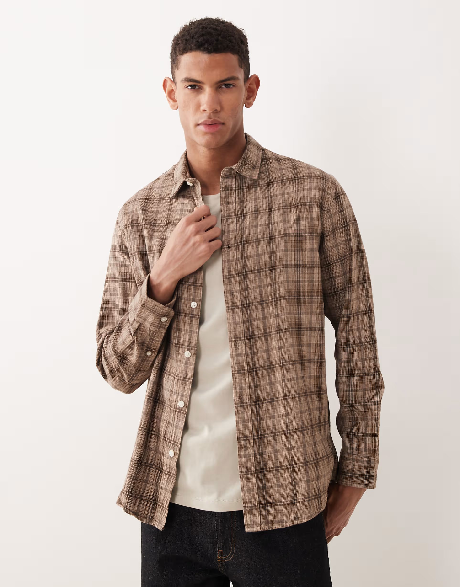 The ASOS Checked Long Sleeved Shirt in Brown & Beige is made from checked fabric.