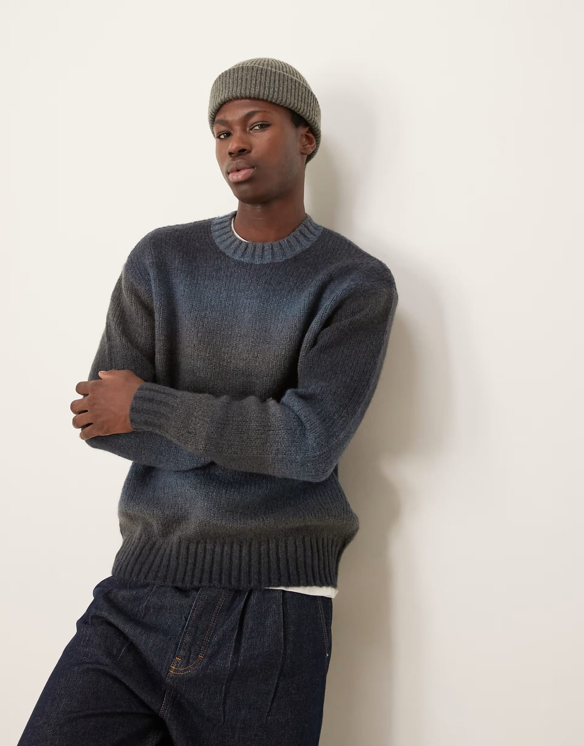 The ASOS Knitted Jumper with Ombre Effect in Black Blue is ideal for casual.