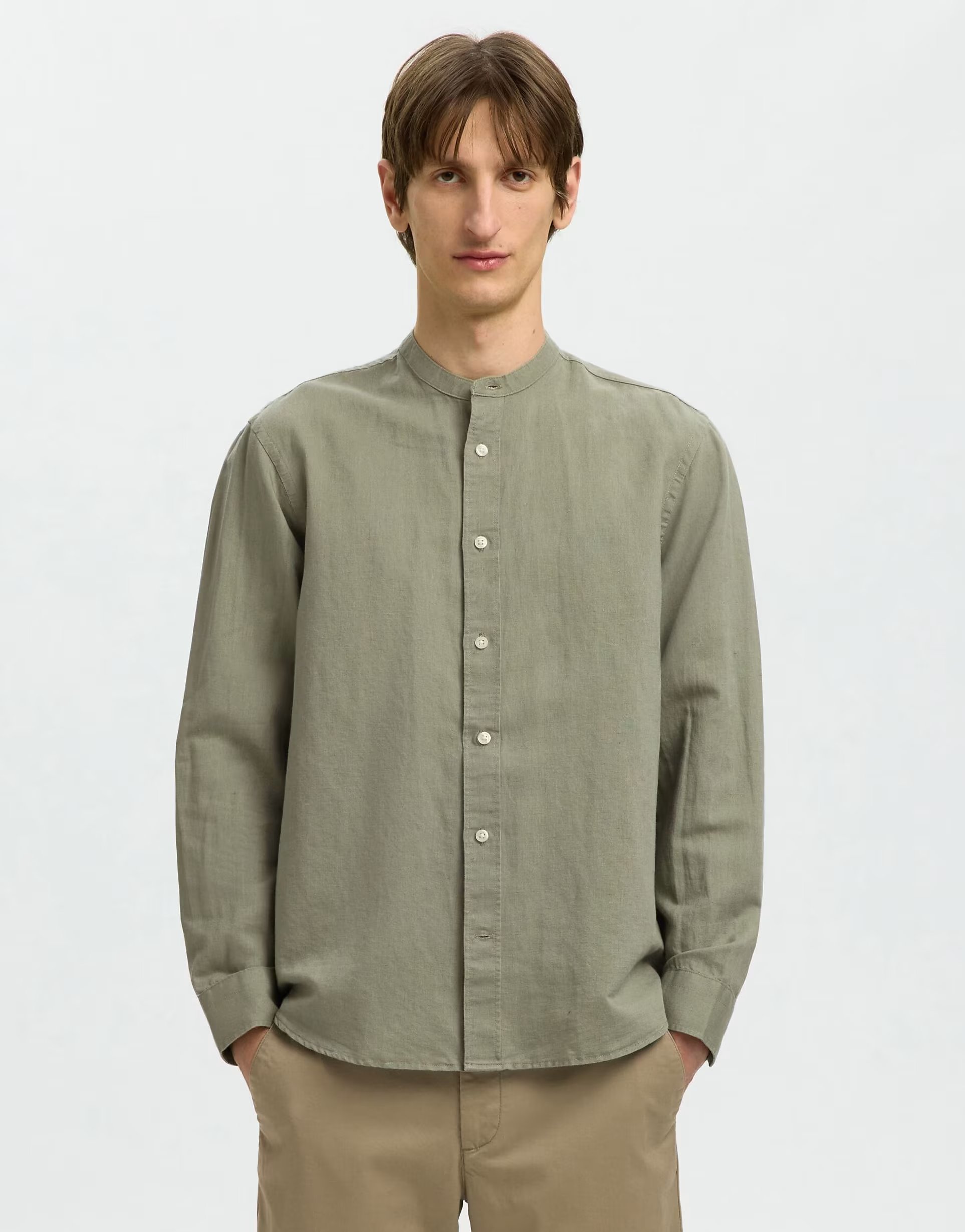 The ASOS Selected Vetiver Long Sleeved Shirt is available in sizes XXXL, XXL, XL, XS, L, M, S.