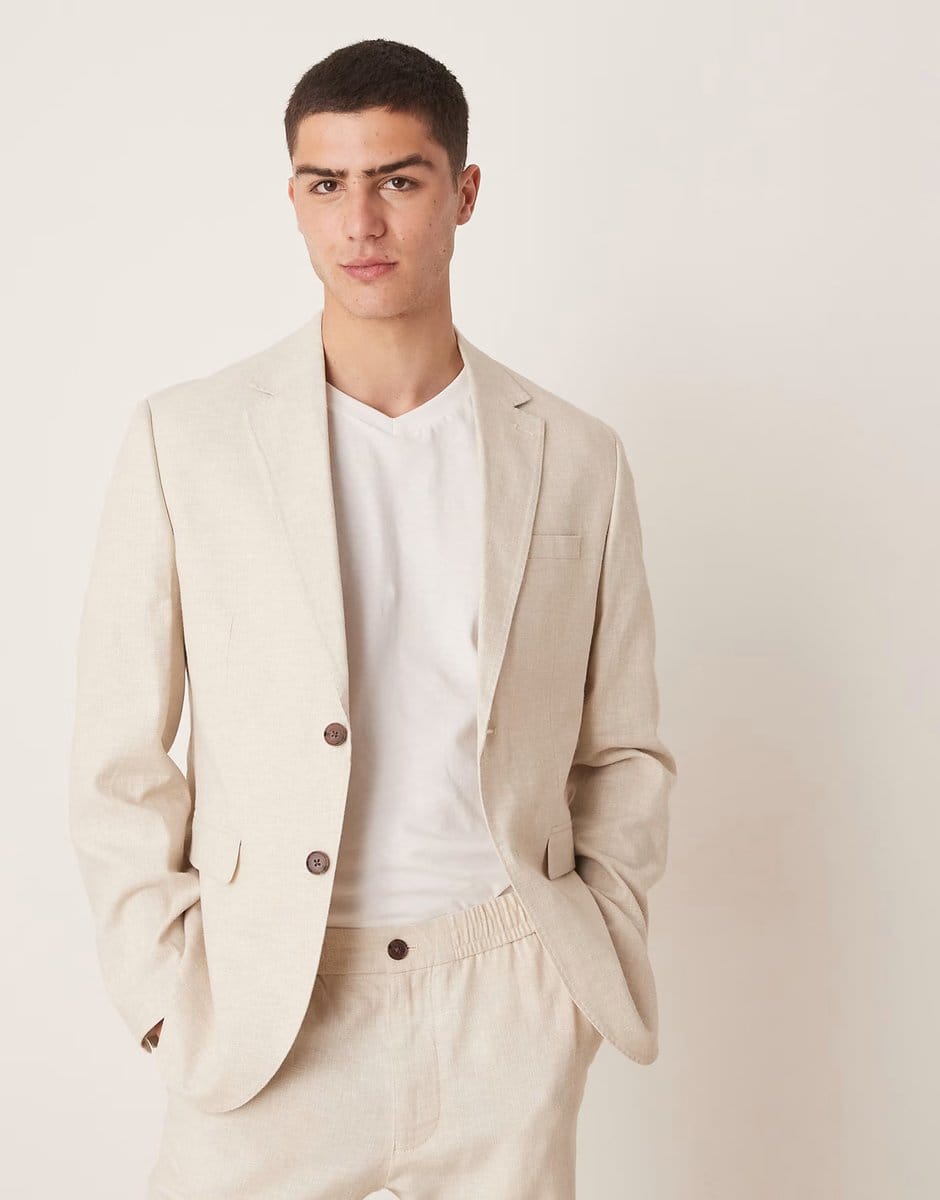 The ASOS Selected Malik Linen Blazer in Cream is ideal for smart-casual, formal.